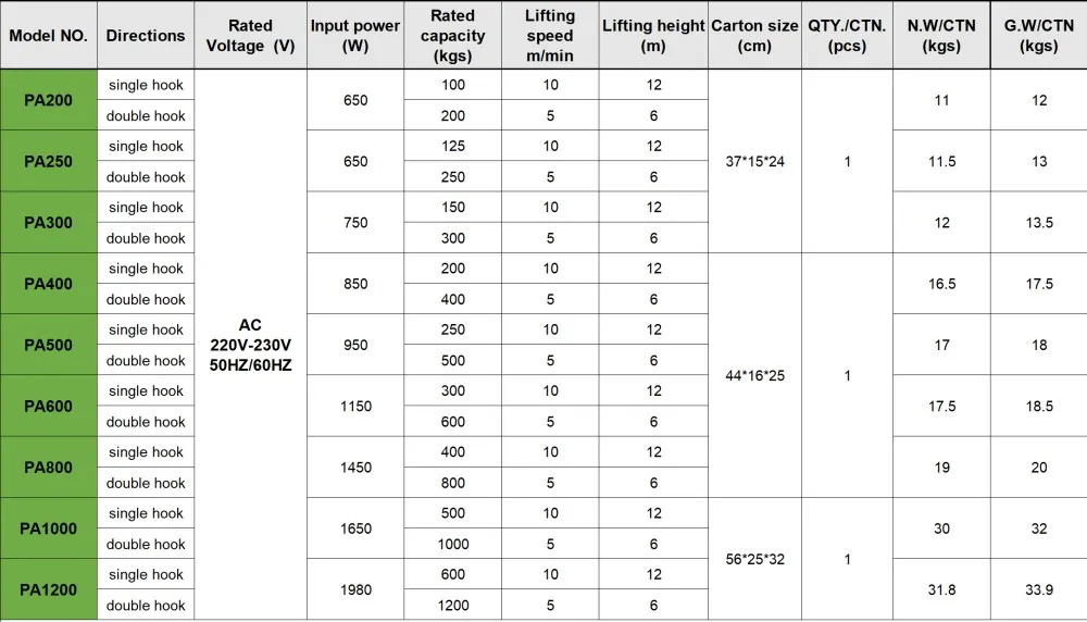 Miniature electric hoist lifting speed can reach 12 m/min, and wire long initial design is 12 meters, in the hook, special design advanced double set, greatly increased the miniature electric hoist lifting weight, mini electric hoist civil use 220v power supply, especially suitable for daily civil, industrial production line, freight logistics and so on.