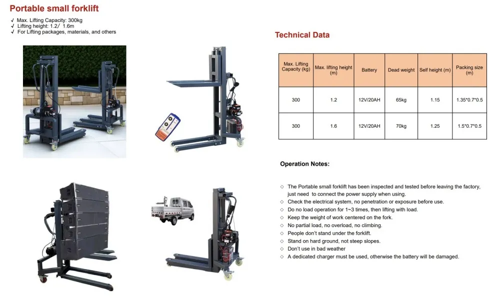 The Mini Electric Stacker is Maintenance free batteries, fully automatic battery charger and non-marking wheels with wheel stops make the unit very easy and safe to operate and completely clean and nearly maintenance free.The smooth-running castors enable it to cover medium length distances with ease.Swivel castors enable the device to be positioned exactly at the workplace or for unloading goods without twisting the operator’s back.